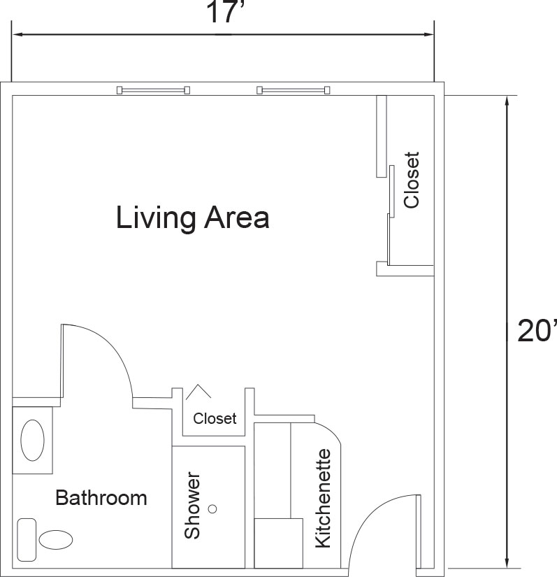 Reflections has spacious studio, one-bedroom and two-bedroom apartments designed to provide residents with individual apartments to create a home like feel. Each apartment has its own private bath with shower, along with a small kitchenette area